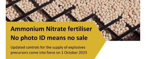 It is now a legal requirement to present valid photo ID (e.g. driving licence, passport, or firearms licence) when purchasing fertilisers containing 16% or more nitrogen in ammonium nitrate form.