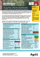 Arlington possesses a strong overall disease resistance profile. It carries the valuable Pch1 eyespot genetics (5.9) and resistance to yellow rust is good (7 RL; 8 Agrii), although there potential future race breakdowns affecting other YR15 susceptible varieties too.