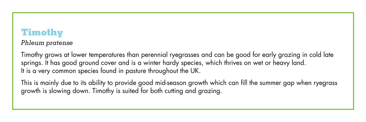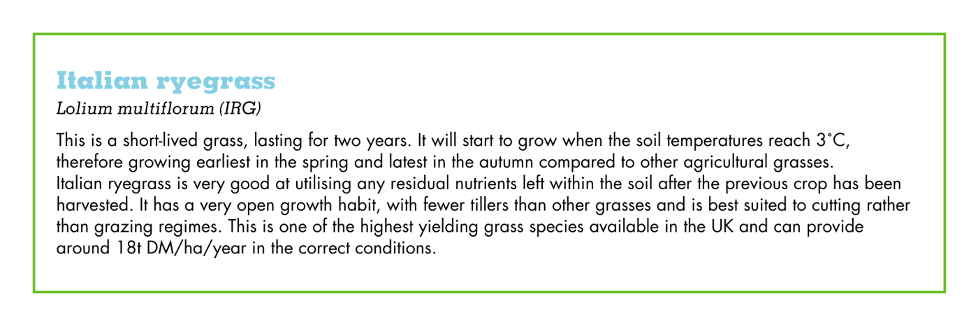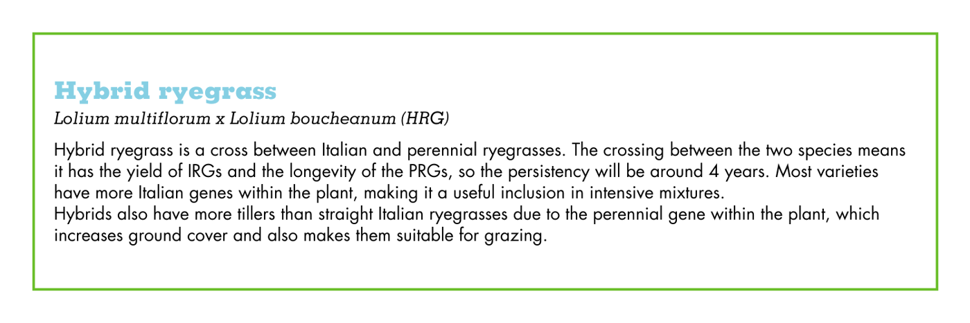 There are also other types of ryegrass and species used such as clovers, Timothy, cocksfoot, and in recent years Festuloliums, which all have a role to play in certain situations.