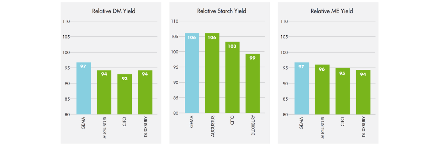 Gema has very high starch content for assured maturity, providing energy dense feed ideal to balance grass silage rations. It has high starch yields from every hectare grown along with an excellent yield with exceptional earliness.
